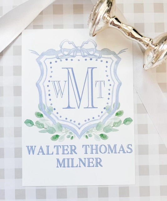 Watercolor milestone Baby Boy Cards | Crest Milestone Cards | Grandmilenial Baby | Preppy Boy Milestone Cards